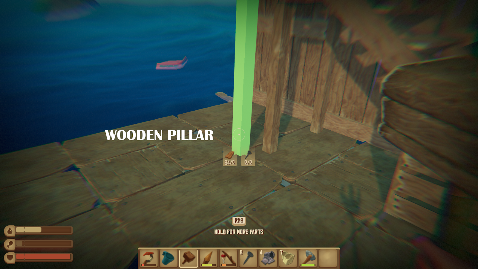 - Craft a building hammer in order to expand raft, or repair it from sharks